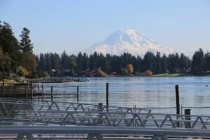 Popular recreational lake with parks, trails, and waterfront residential areas.